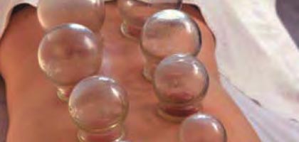 Glaskugeln in unterschiedlichen Grössen werden erhitzt, auf die Haut aufgesetzt...