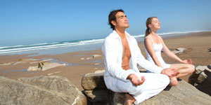 Beide Arme dem Körper entlang hängen lassen und bei jedem Einatmen langsam seitlich bis über den Kopf heben und beim Ausatmen wieder langsam herunterführen.